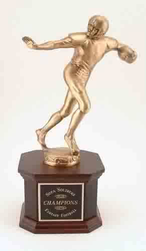 THE BIG EAST ALLIANCE FOOTBALL LEAGUE HAS THE FOLLOWING TROPHIES: BEAFL CHAMPIONSHIP TROPHY, 1ST RUNNERUP TROPHY, 2ND RUNNERUP TROPHY, 3RD RUNNERUP TROPHY, COACH OF THE YEAR, LEAGUE MVP, OFFENSIVE MVP, DEFENSIVE MVP, QB OF THE YEAR, RB OF THE YEAR, WR OF THE YEAR, OFFENSIVE LINEMAN OF THE YEAR, DEFENSIVE LINEMMAN OF THE YEAR, LB OF THE YEAR, DB OF THE YEAR, KICKER OF THE YEAR AND INDIVIDUAL TROPHY OF THE YEAR. PLUS ALL ALL-STAR PLAYERS WILL RECEIVE MEDALS WITH THEIR NAME, THEIR TEAM, THEIR JERSEY NUMBER AND THEIR POSITION ENGRAVED ON THE BACK.