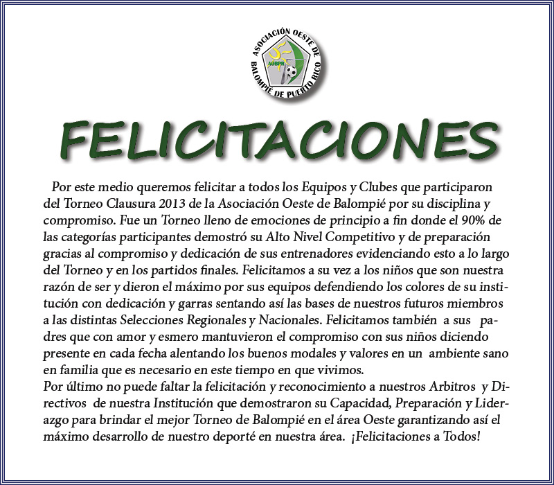 Felicitaciones, gracias a todos los perticipantes del Torneo