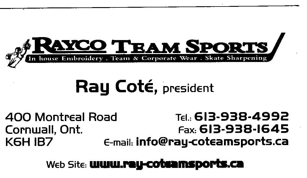 South Glengarry Minor Sports Glen Walter would like to thank the following sponsors: